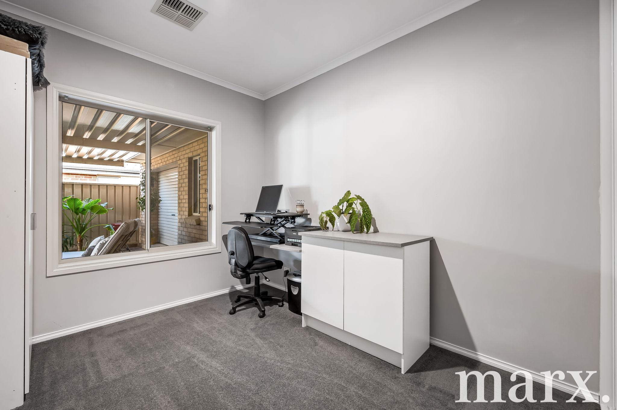 Upon entry, the first of two living areas welcomes you with space to retreat or work from home. Featuring statement barn doors and its own split system, this flexible room has previously been used as an office with a separate external door. The original window has been retained, allowing for a simple return to its intended layout.