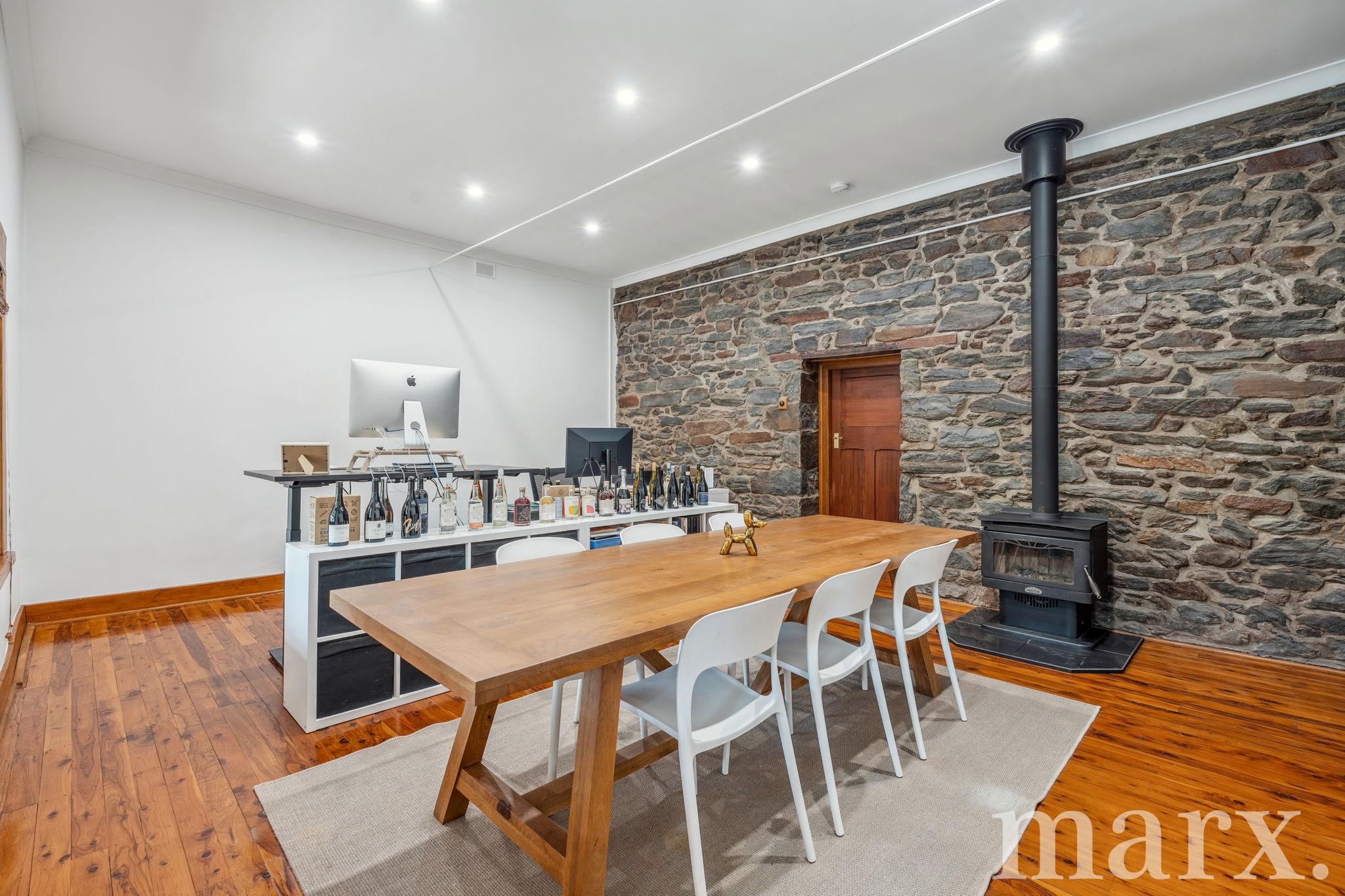 – The spacious main living area, currently used as a studio, boasts updated LED lighting, a slow combustion wood fire, and has been freshly painted to create a bright, welcoming space.