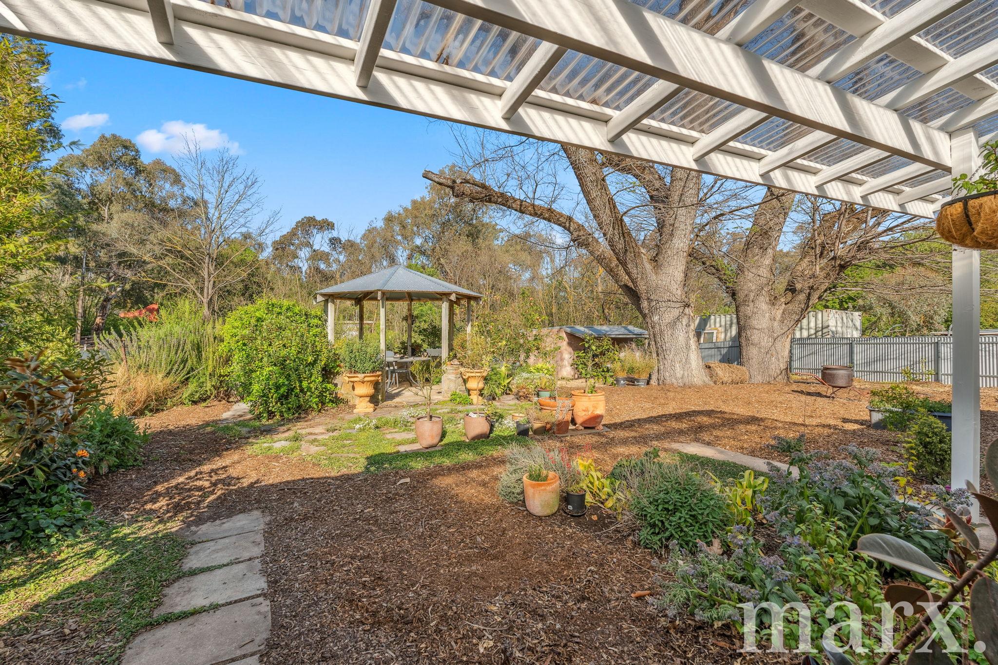 – Enjoy the peaceful surrounds under the pergola with its new roof, overlooking the edible garden that includes nectarine, juicing orange, blood orange, loquat, lily pilly, rhubarb, kale, juniper bushes, lime, pomegranate, and mature plants that attract birds and bees. Heirloom roses, a camellia hedge, rosemary, and other herbs complete this beautiful garden oasis.