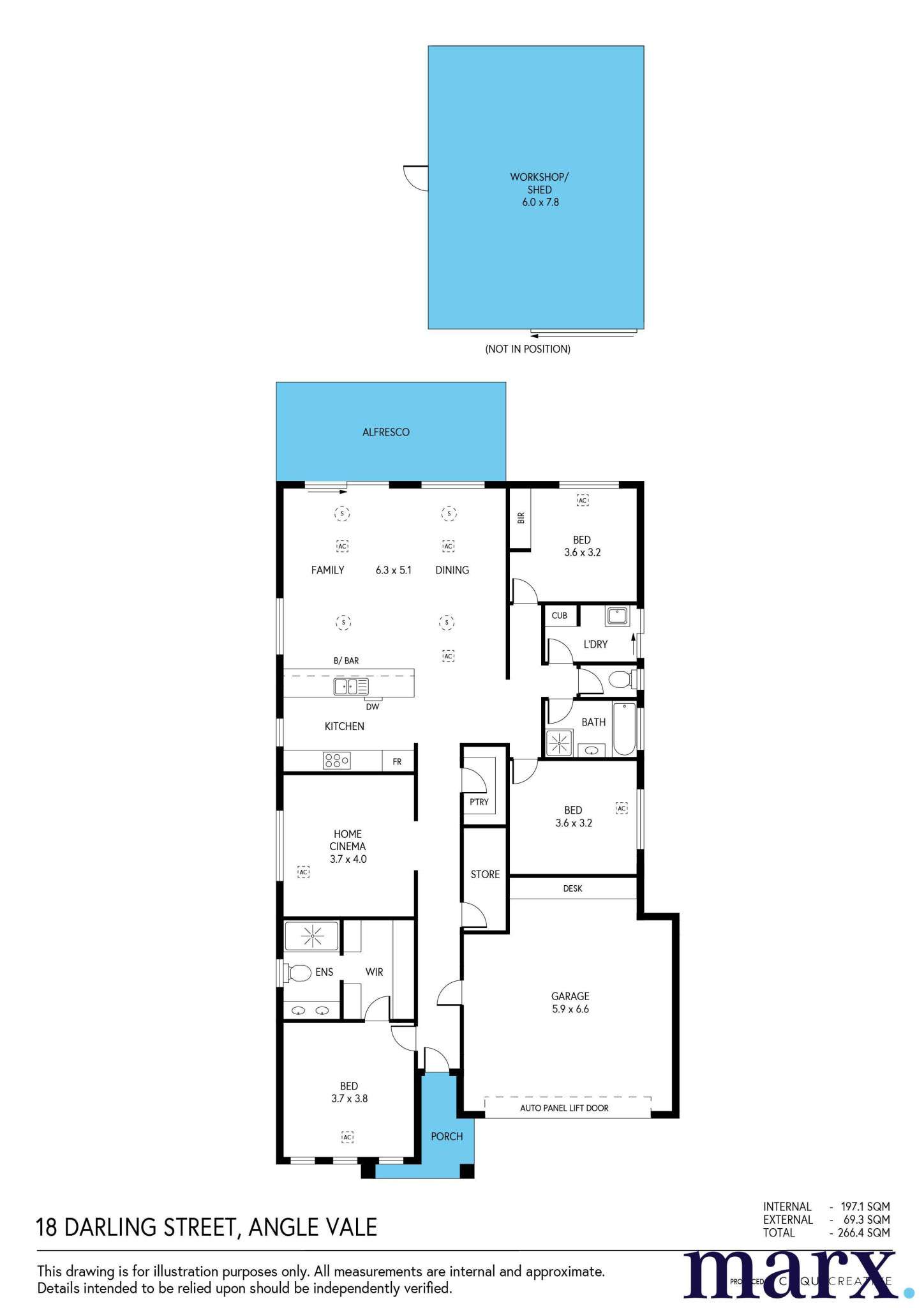 – Workshop cabinetry installed for your DIY projects and further storage.