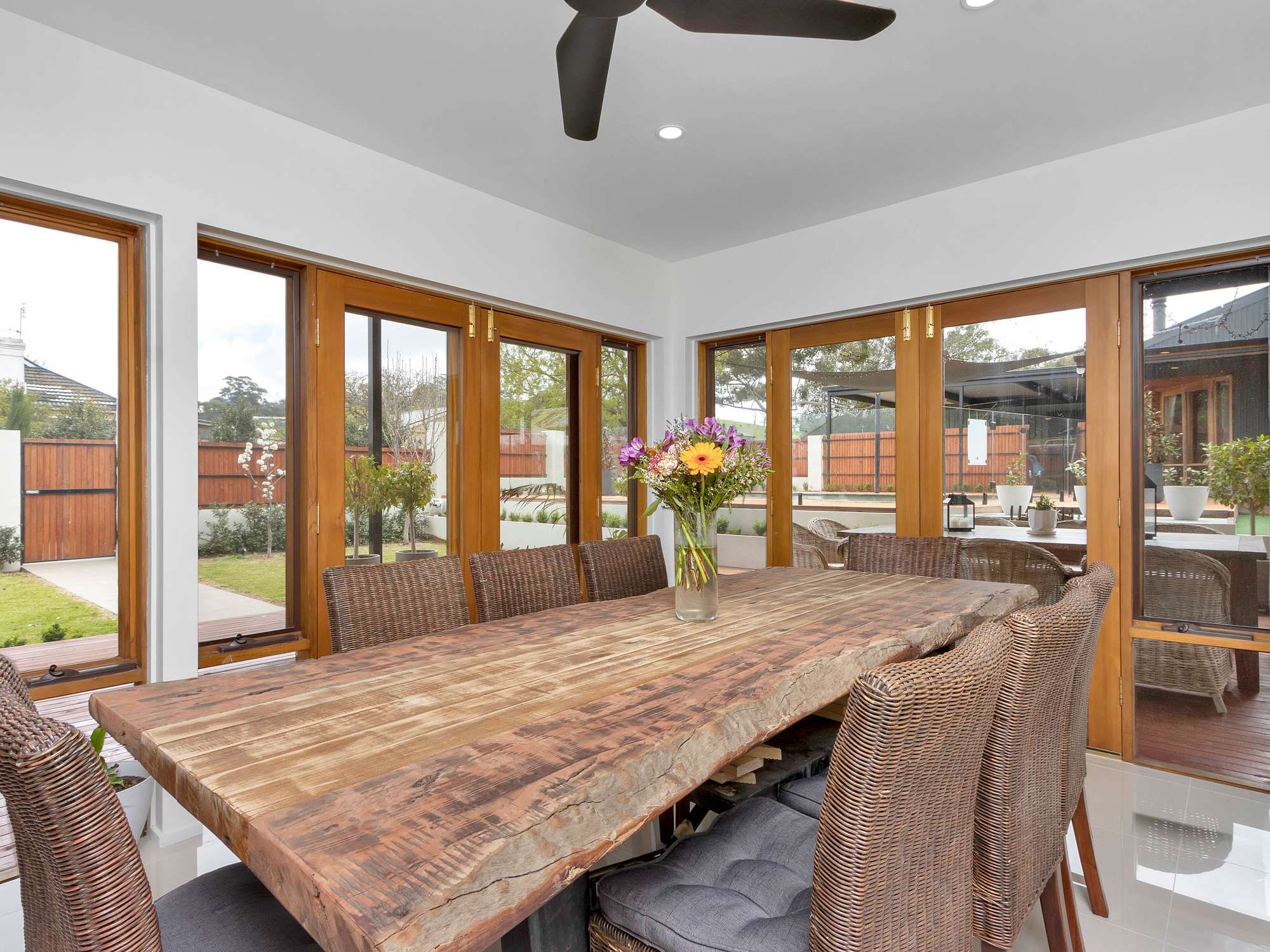 • Red cedar French doors that allow you to easily move between any of the living spaces to the under cover pergola and outdoor entertaining areas