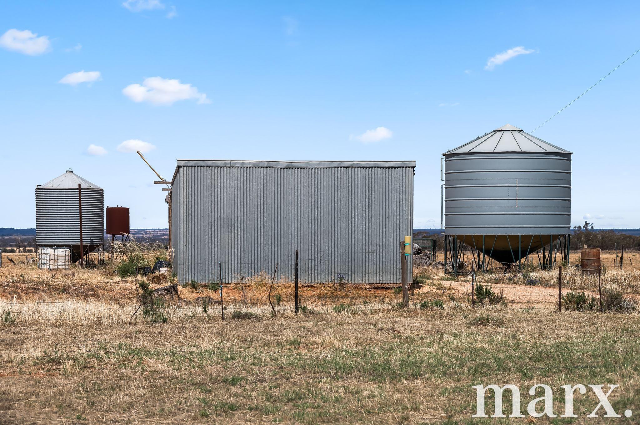 Practical infrastructure supports the farming enterprise, including two machinery sheds, a workshop, an old piggery, two silos and a fuel bowser. Approximately forty thousand litres of rainwater storage service the house and surrounds. The farming land is divided into four well fenced paddocks (currently managed under a share farming agreement), with approximately 54 hectares currently planted to wheat, making the property well suited to mixed farming pursuits.