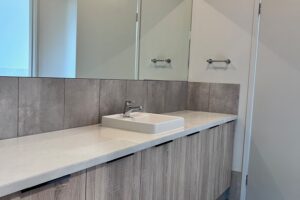 The open plan kitchen, living and dining area forms the heart of the home, featuring sleek cabinetry, dishwasher, walk in pantry, and ample bench space, all flowing seamlessly to the outdoor entertaining area. Sliding doors create a natural connection to the alfresco, perfect for relaxed indoor-outdoor living.